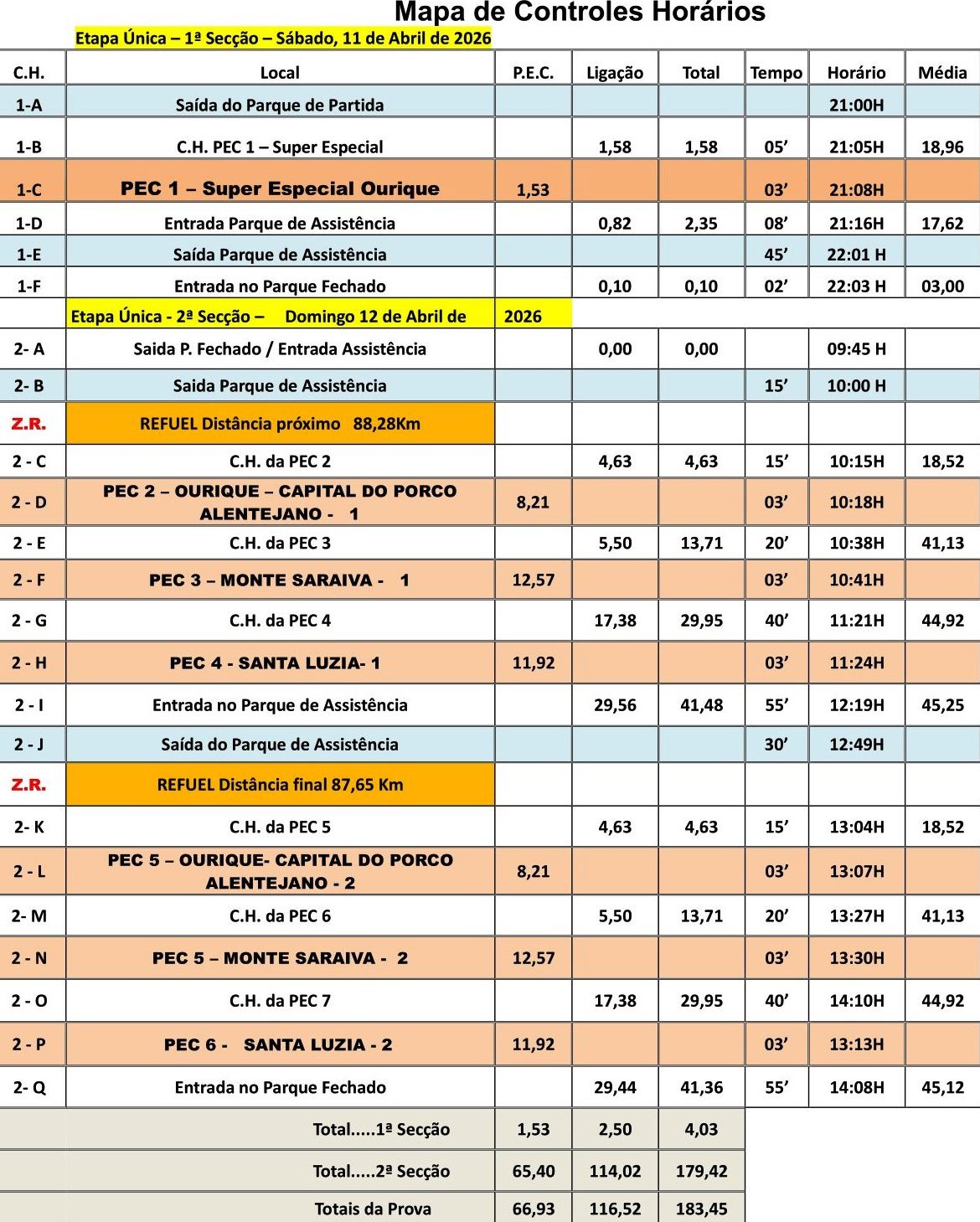 Mapa Controlos, Itinerários e Horários